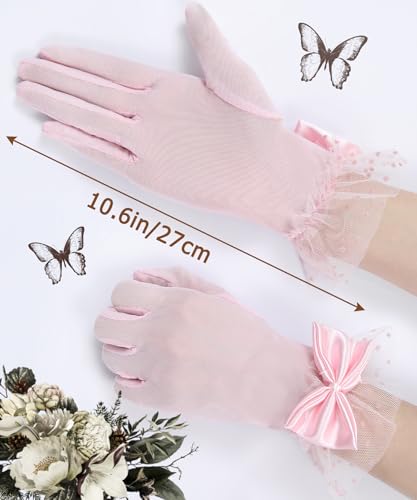 Women's Lace Gloves Tea Party Gloves With Sheer Bow Short Princess Wedding Evening Costume Accessories 6