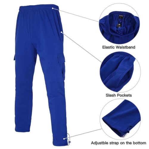 HOT ! Mens Fleece Cargo Sweatpants Multi-Pocket Loose Casual M-5XL Tall and Big Size