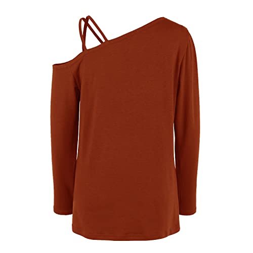 MAKARTHY Women's Cold Shoulder Tops Long Sleeve Strappy Off Shoulder Top Casual Tunic Blouse T-Shirts 4