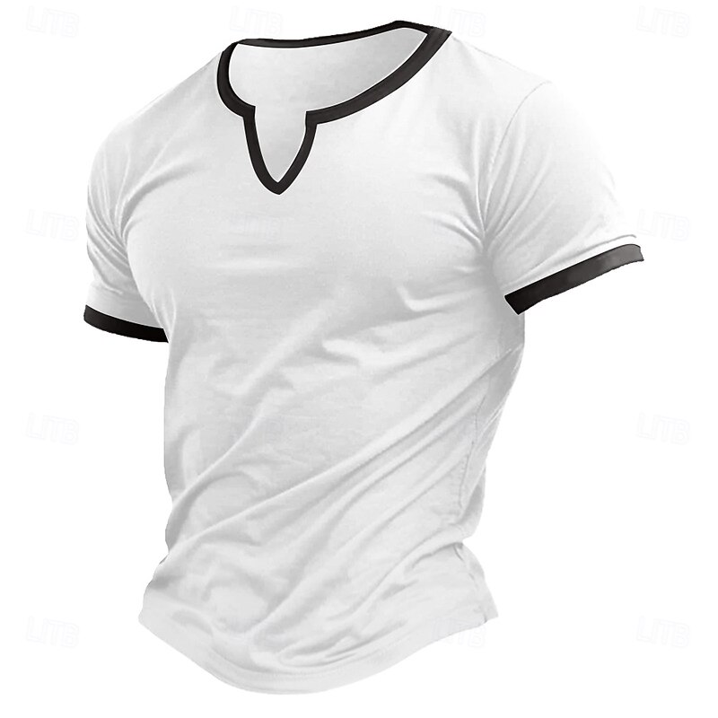 More information about Men's T Shirt Tee Top Short Sleeve Short Sleeves V Neck Notched Summer Color Block Fashion Designer Basic Classic Style Vacation Street Going out White Black Navy Blue Top Tee for Men