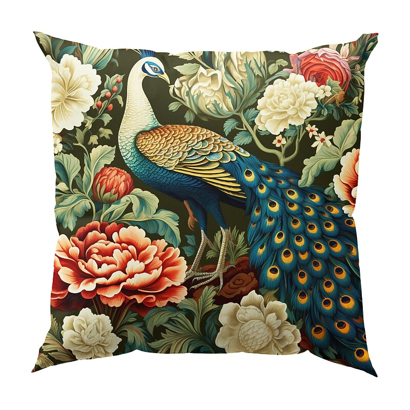 Peacock Floral Double Side Pillow Cover 1PC Soft Decorative Square Cushion Case Pillowcase for Bedroom Livingroom Sofa Couch Chair 17