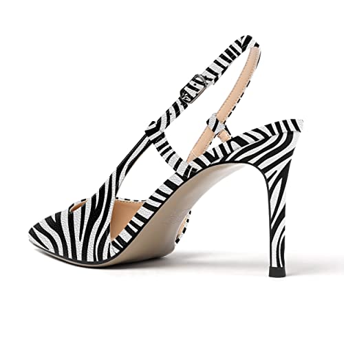 MODENCOCO Women's Pointed Toe Cut Out Slingback Patent Stiletto High Heel Pumps Evening Dress Shoes 3.5 Inch 6