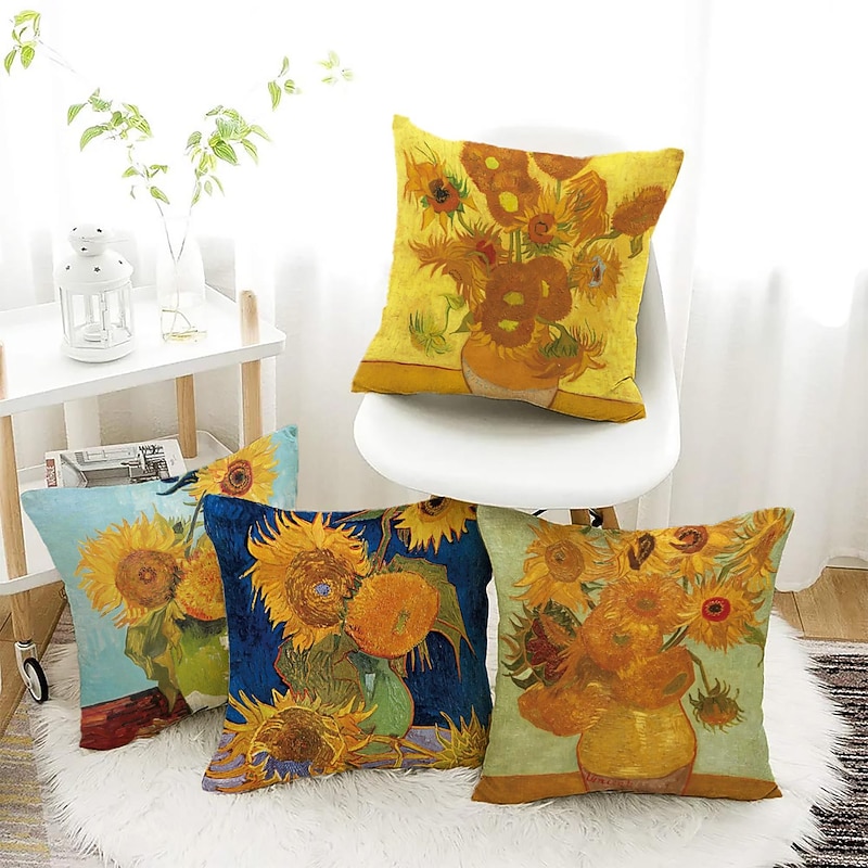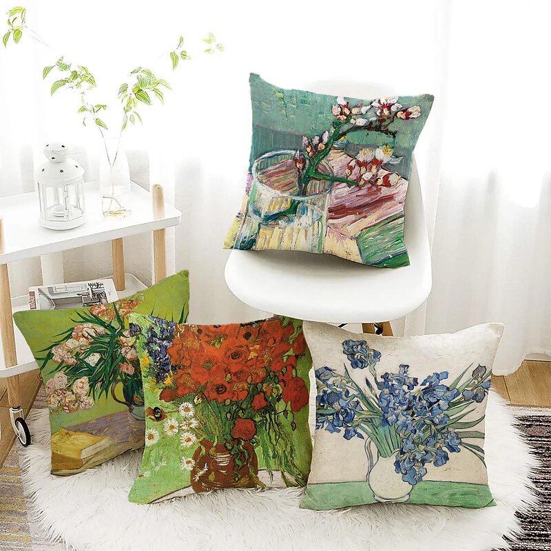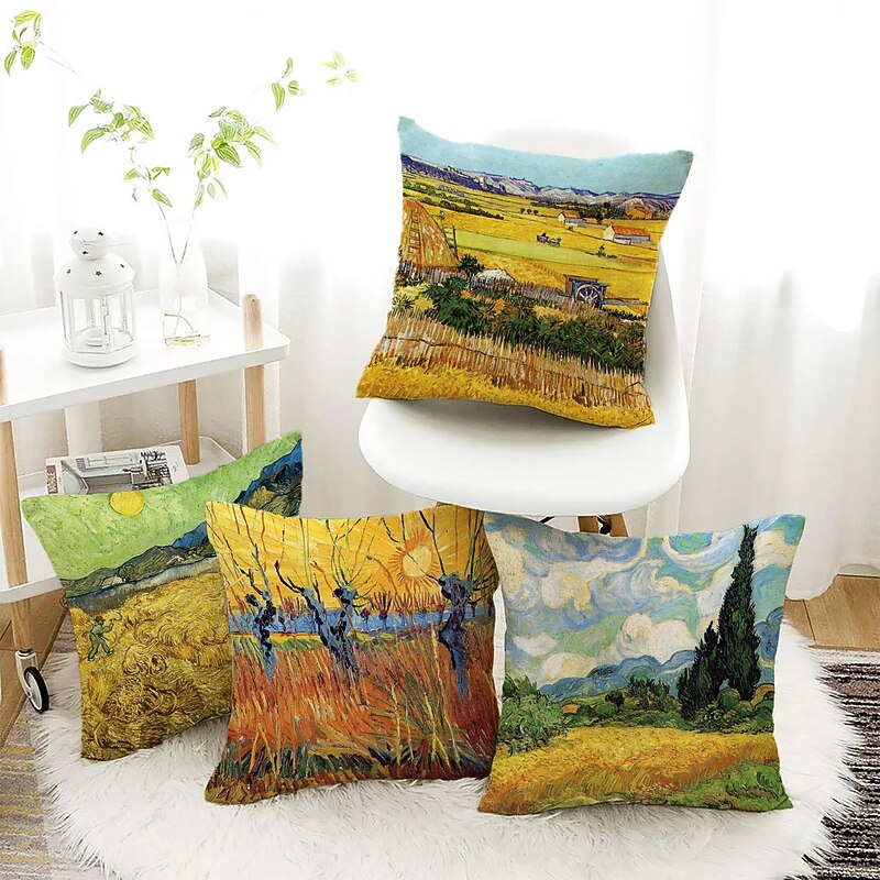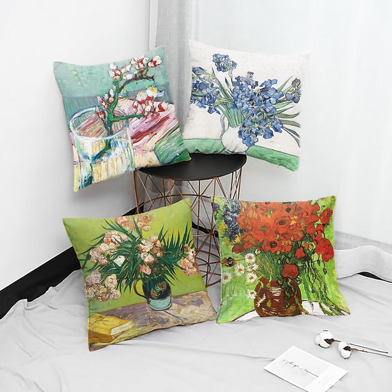 Van Gogh Double Side Pillow Cover 4PC Soft Decorative Square Cushion Case Pillowcase for Bedroom Livingroom Sofa Couch Chair Machine Washable