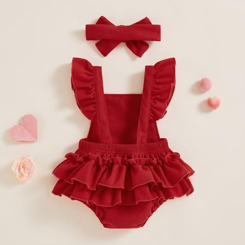 Adobabirl Baby Girl Ruffle Romper Dress Sleeveless Bowknot Embroidery Jumpsuit Valentines Outfit Newborn Clothes 1