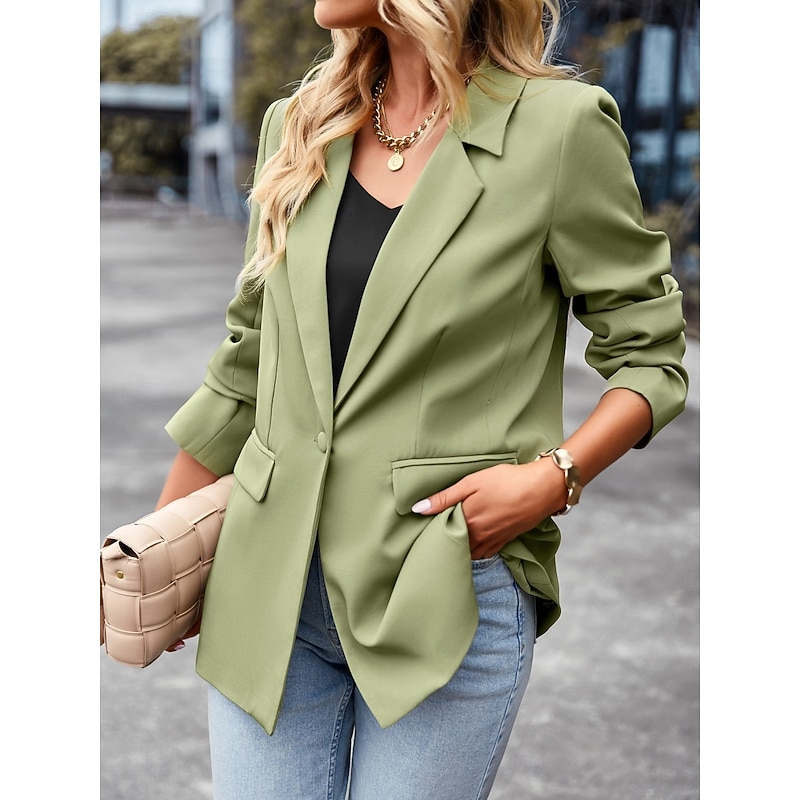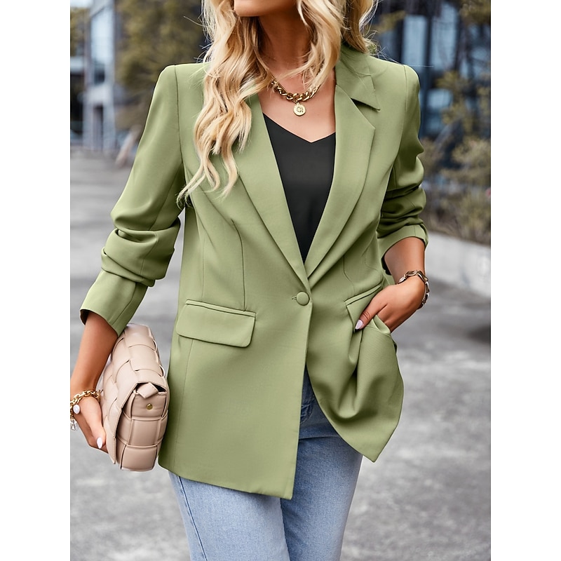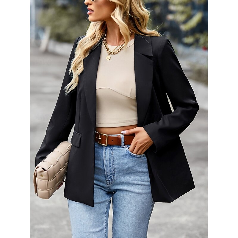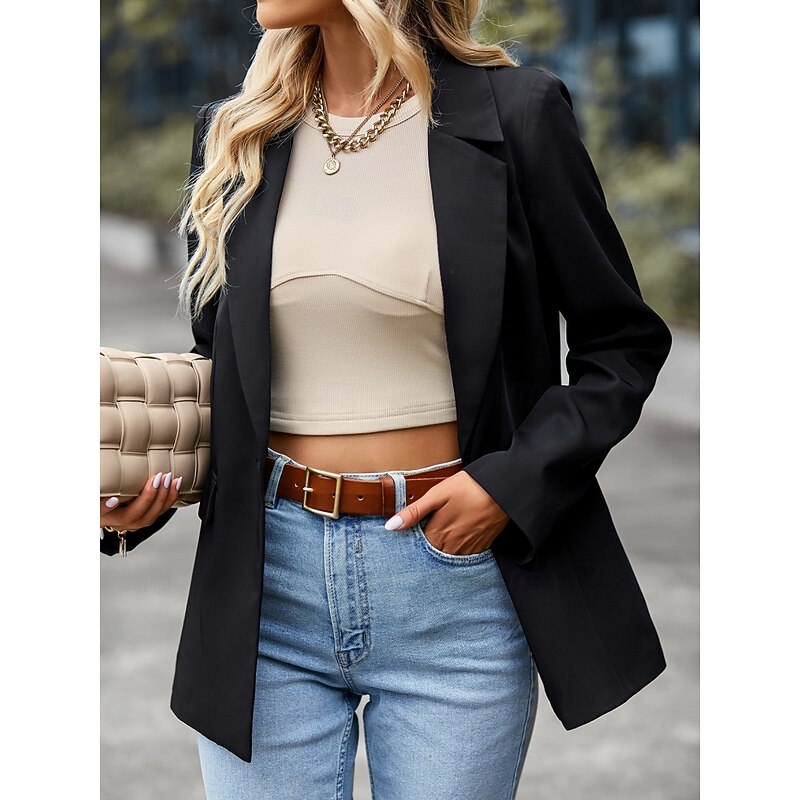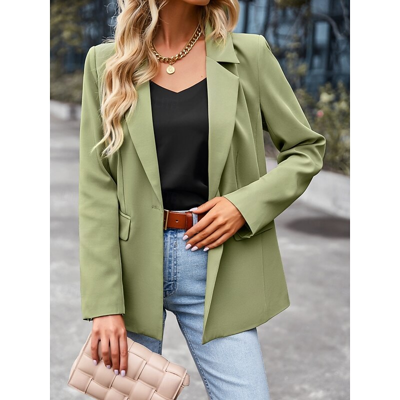 $57.99 - Women's Blazer Breathable Comfortable Pocket Casual Plain Office Street Casual Daily Wear Single Breasted Regular Turndown Regular Fit Long Sleeve Outerwear Black White Green Summer 2025. Shop for cheap Blazers & Suits online? Buy at lightinthebox.com on sale today!