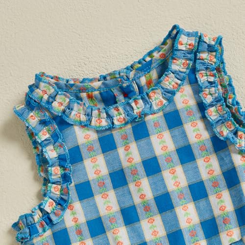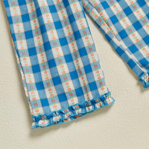 • Feature: 2PCS Baby Girls Floral Plaid Outfits Infant Baby Crew Neck Back Button Sleeveless Tank Top Ruffle Vest + Elastic Waist Straight Loose Pants Sets Toddler Summer Outfits Sets, Easily Match Any Outfits
