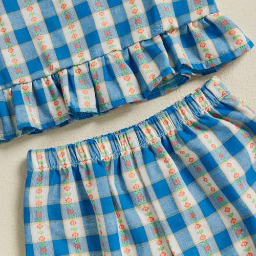 • Occasion: Infant Baby Girl Shorts Set Floral Plaid Frill Trim Ruffle Tank Tops Elastic Waist Pants Summer Clothes 2Pcs Set, Suit for Birthday Gift to Your Princess, Casual Daily Wear, Photo Shoot, Party, Other Special Occasions