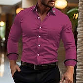 More information about Men's Shirt Dress Shirt Button Down Shirt Non Iron Shirt Color Block Office & Career Wedding Party Black White Pink Wine Long Sleeve Lapel Spring & Fall Clothing Apparel Pocket