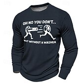 Featuring a unique 3D print with the witty "Oh No You Don't Not Without a Washer" graphic, this T-shirt adds a playful twist to your wardrobe. The classic crew neck and long sleeve design make it a versatile choice for layering or standalone wear. The design cleverly incorporates hardware elements, providing a quirky and fun detail that stands out.