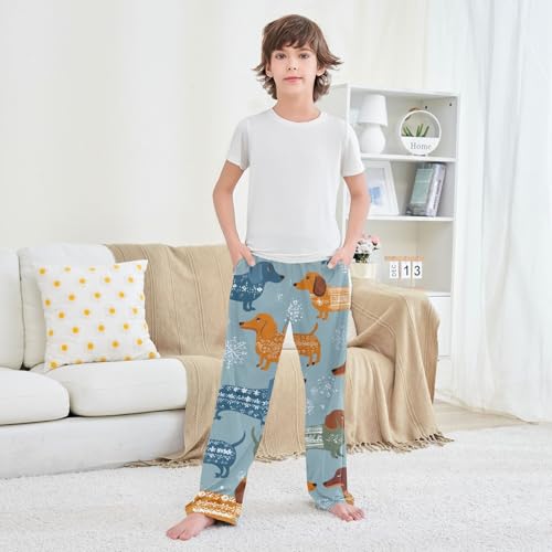 HOT ! ZZXXB Dachshund Winter Snow Boys Long Pants Soft Trousers Elastic Waist Kids Lounge Bottoms with Pockets S-XL