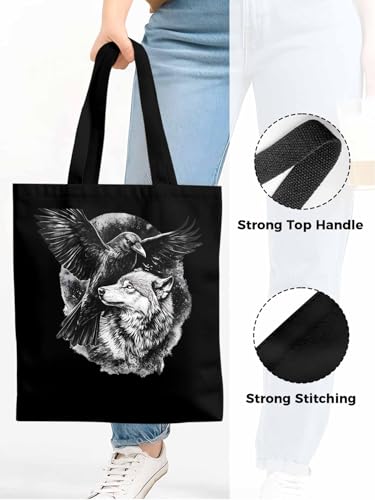 HOT ! Canvas Tote Bag, Vintage Wolf Crow Print Aesthetic Canvas Tote Handbags for Women Shoulder Bag,
