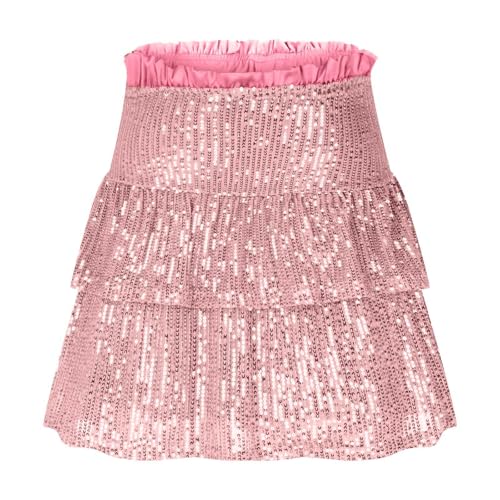 Women's Sequin Skirt Sparkly Cute High Waist Ruffle Flowy Shiny Glitter Mini Short Skirts Night Out Club Party 6
