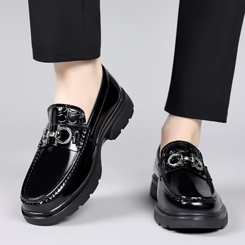 HOT ! High - end Men's Chunky Platform Loafers, Comfy Slip - On Penny Loafers. Shiny Patent Leather Dressy Shoes for Work, School, Party with Buckle