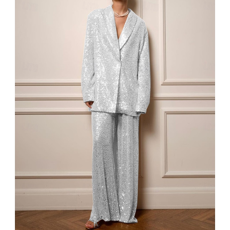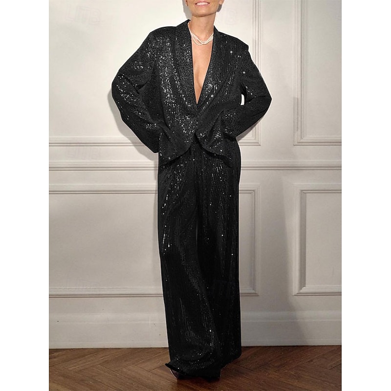More information about Women's 2 Pieces Suits Formal Wedding Wedding Guest Sequin Elegant Vintage Glittering Long Sleeve Floor Length Notched Lapels