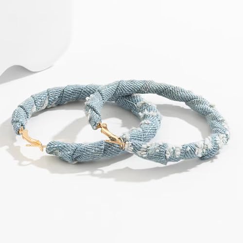 • ❤Hoop Earrings Material❤ - Blue jean earrings are made of high quality denim and alloy, nickel-free, lead-free, cadmium-free and hypoallergenic allows for comfortable wear.