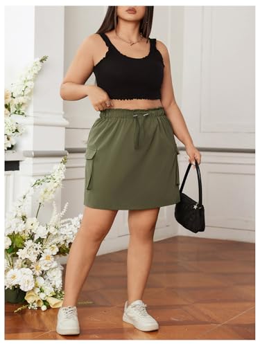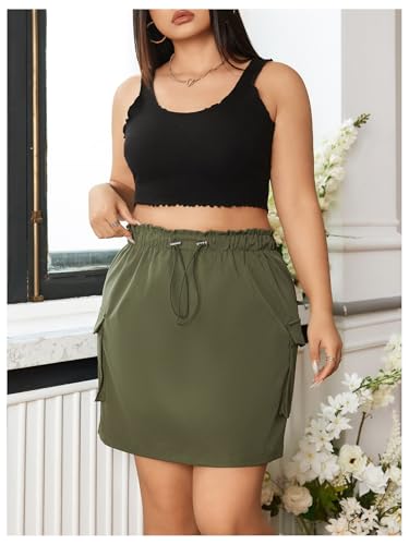 More information about OYOANGLE Women's Plus Size Drawstring Elastic Waist Cargo Skirt Flap Pocket Skirts Streetwear