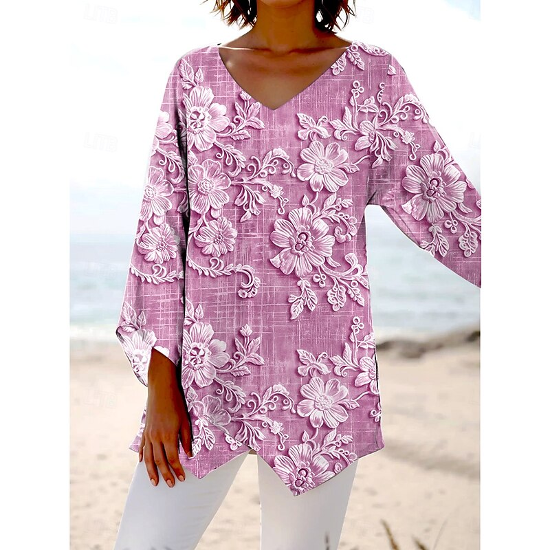 HOT ! Women's Blouse Long Sleeve Asymmetrical Hem 3D Print Floral Graphic Hawaiian Stylish Casual Short Sleeve V Neck Regular Tops Daily Holiday Going out Print Red Blue Purple Green Khaki Summer Spring