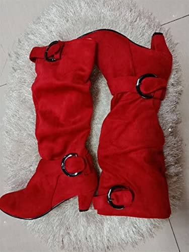 More information about YDYCG Woman Shoes Large Size 34-44 Knee High Boots Women Faux Suede Buckle Fashion Spike Heels (Color : Gray, Shoe Size : 7.5)