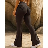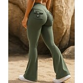 More information about Women's Running Pants Sports Trousers Pocket Flared Bottoms Athleisure Sports Gym Stretchy Breathable Pilates Running Yoga Regular Fit Sportswear Activewear Solid Colored Black Pink Green