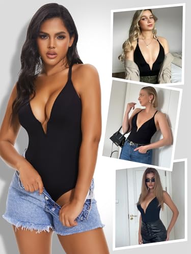 SHAPERIN Bodysuit for Women Shapewear Tummy Control Deep V Neck Plunge Sleeveless Backless Thong Body Suit Tank Top 5