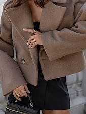 More information about Women's Casual Jacket Warm Comfortable Pocket Buttons Fashion Outdoor Plain Going out Weekend Single Breasted Regular Lapel Regular Fit Long Sleeve Outerwear Black White Apricot Fall Winter