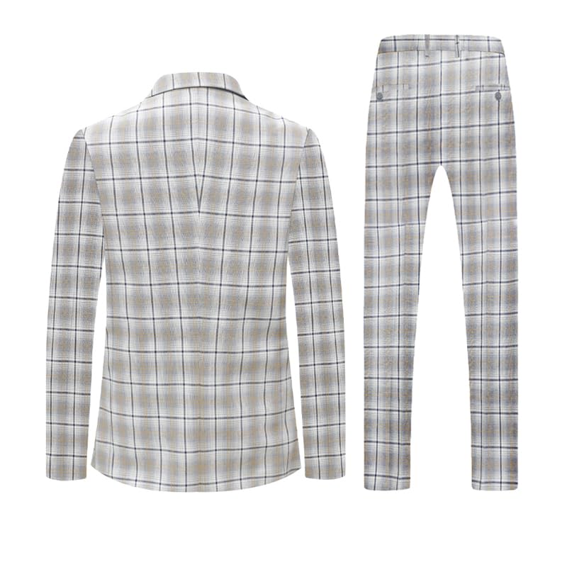Mens Plaid 2 Piece Suits Slim Fit Double Breasted Plaid Suit , Wedding Casual Homecoming Tuxedo Jacket Pants Set 2