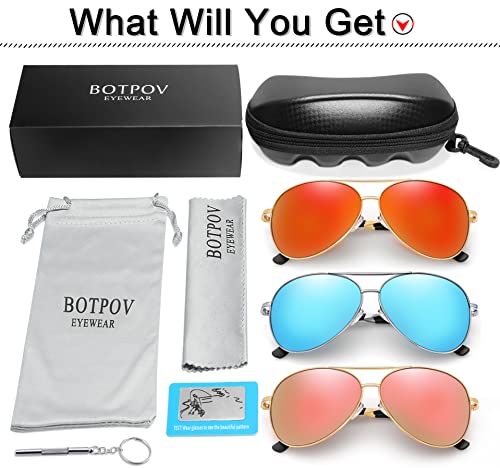 • Gift Ready Packing ➤ BOTPOV aviator sunglasses come with a beige gift ready box, and including a drawstring bag, a soft wipe cloth, a small screwdriver for repair, a polarizing testing card.