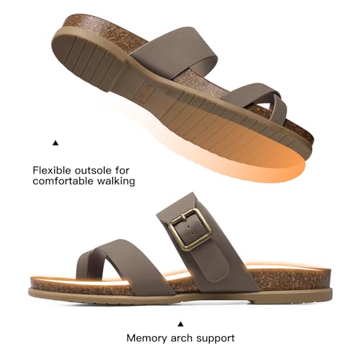 • Design: Adjustable buckle, versatile wear, classic vintage flip-flops, cork sandals that provide arch support to ease your foot pain and plantar fasciitis, lightweight and comfortable, open-toed flat sandals provide you with unbeatable good day.