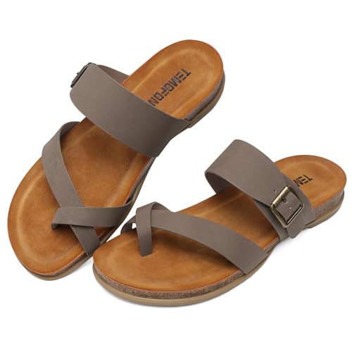 TEMOFON Womens Flat Sandals with Arch Support Adjustable Straps Comfortable Summer Walking Casual Flip Flops Size 5-11 6