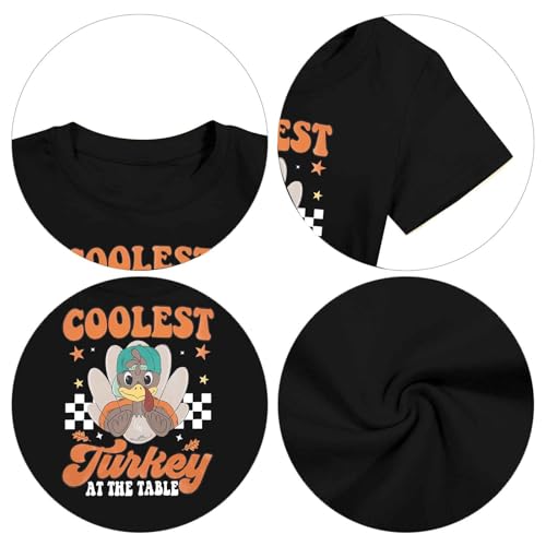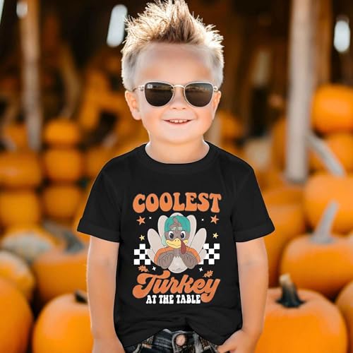 • Exquisite Design: Cute Coolest Turkey At The Table T-shirt, Boys Thanksgiving Kids Shirt, round neck pullover short sleeve top, Thanksgiving Toddler Tee
