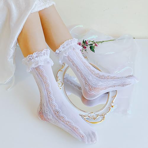 Ruffle Socks Frilly Socks Cute Sheer Socks Black white Ankle Socks for Women 2 Pairs 6