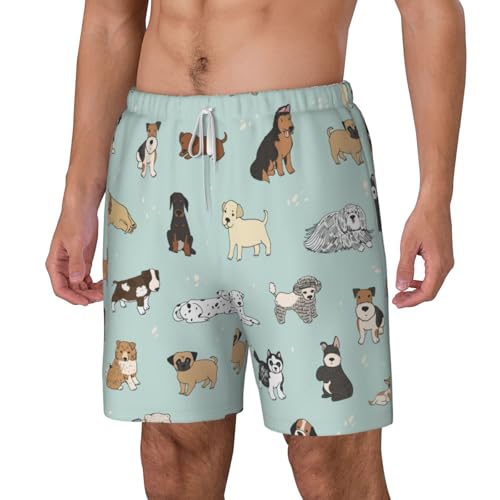 Men's Dog Print Quick-Dry Mesh Swim Trunks Stretch Lining Beach Shorts Surfing Summer Vacations White 7