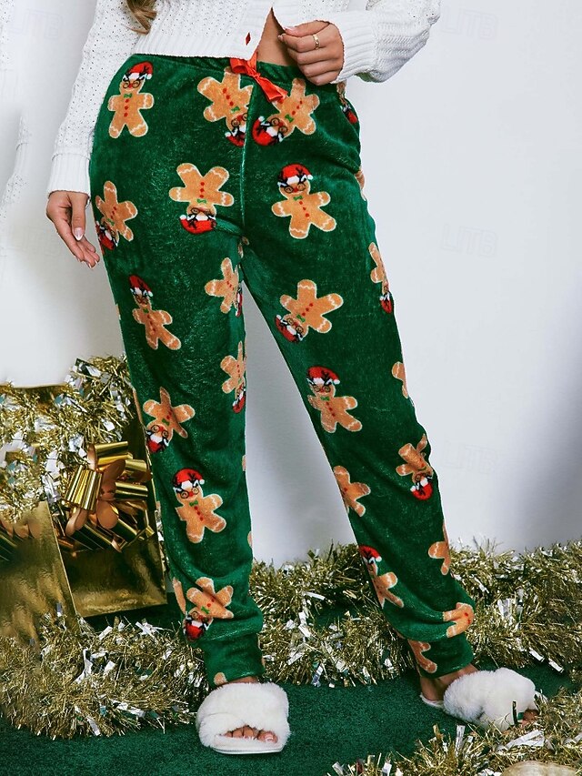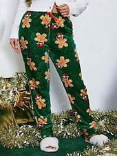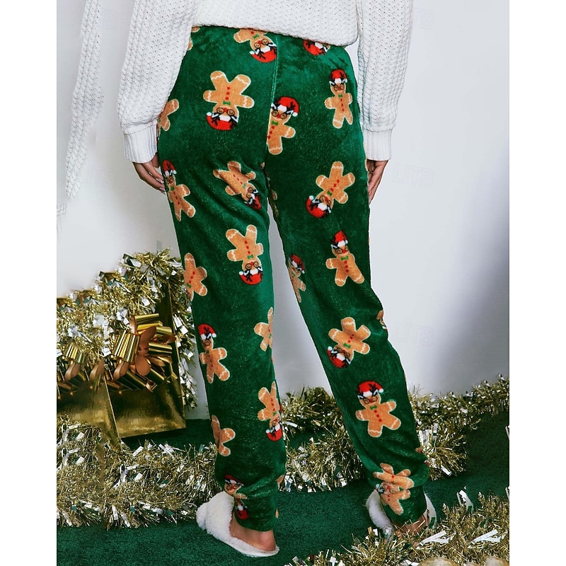 More information about Women's Fleece Pants Chinos Vacation Vintage Streetwear Full Length Medium WaistPantsUgly Christmas Floral Elastic Waist Printing Comfortable Micro-elastic Stretchy Outdoor Vacation Home Green Summer