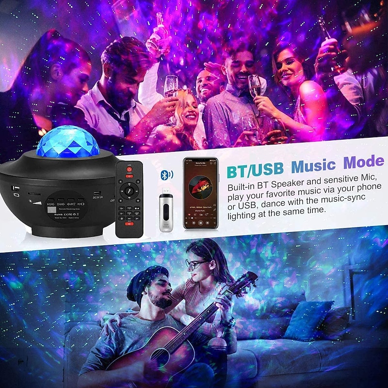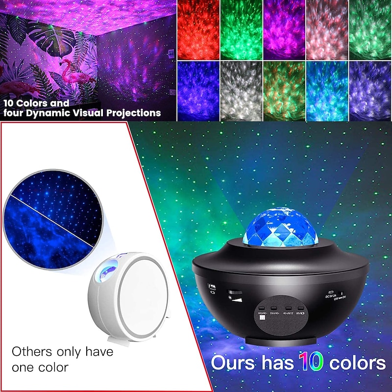 More information about LED Galaxy Projector Night Light Ocean Wave Star Projection with Bluetooth Music Speaker Remote Control 10 Colors 21 Lighting Modes Brightness Levels Adjustable for Bedroom Gaming Room