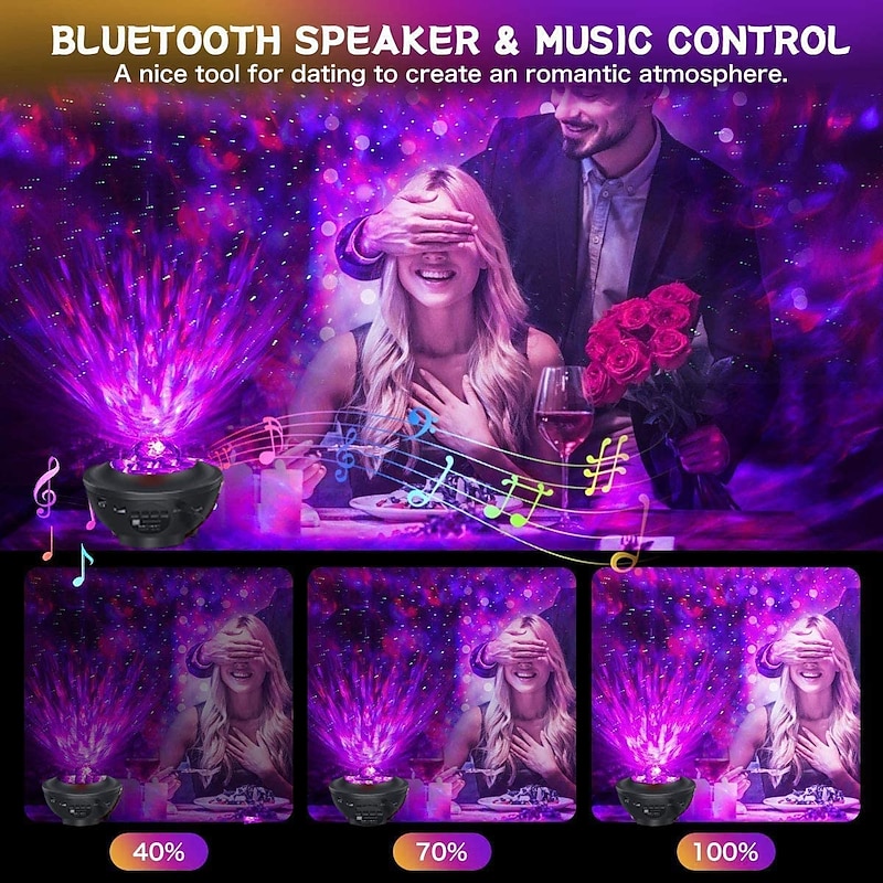 LED Galaxy Projector Night Light Ocean Wave Star Projection with Bluetooth Music Speaker Remote Control 10 Colors 21 Lighting Modes Brightness Levels Adjustable for Bedroom Gaming Room 6