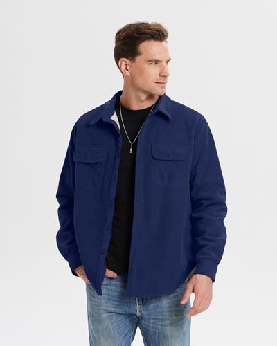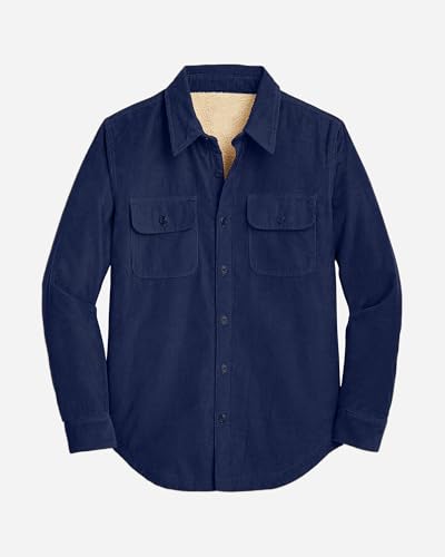 Locachy Men's Warm Fleece Sherpa Lined Corduroy Shirt Soft Long Sleeve Button Down Shirt Jacket 7