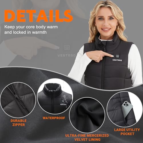 Heated Vest Women, Heated Jackets for Women, 3 Heating Levels (Battery Pack Included) Black 4