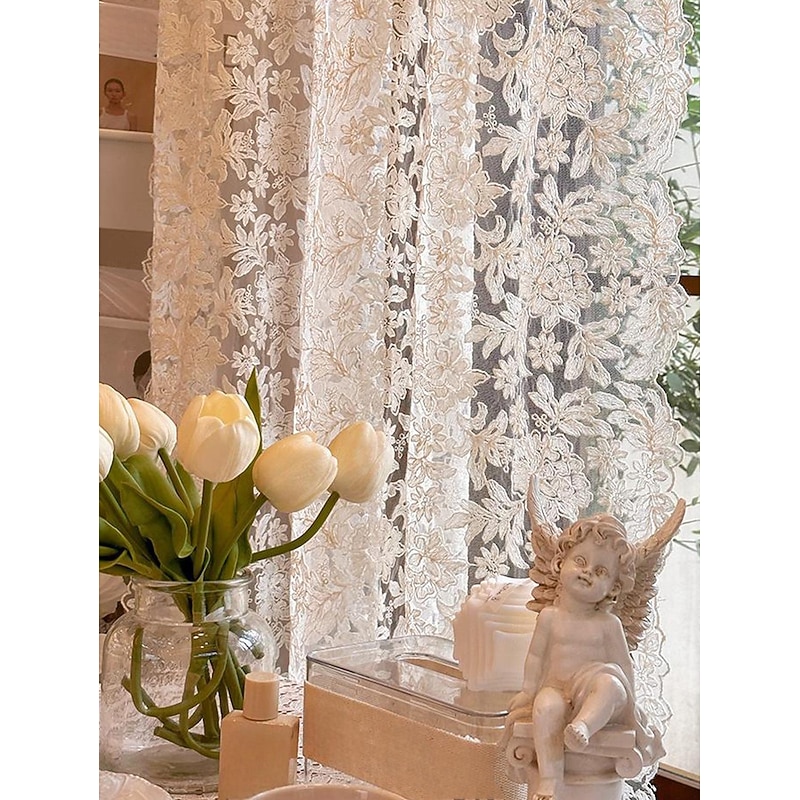 More information about 1Piece Vintage Jacquard Sheer Curtain Short Curtain With Rod Pocket Polyester Mesh Lace Embroidered Home Living Room Bedroom kitchen Decor