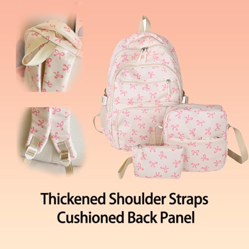 HOT ! Bow Backpack 3pcs Set Coquette Nylon Backpack for Travel Daily Use, Cute Kawaii Backpack Set (pink)