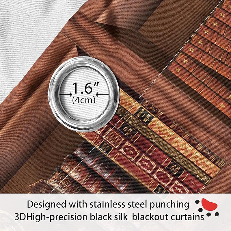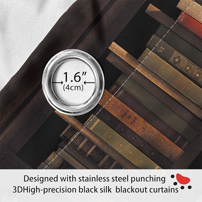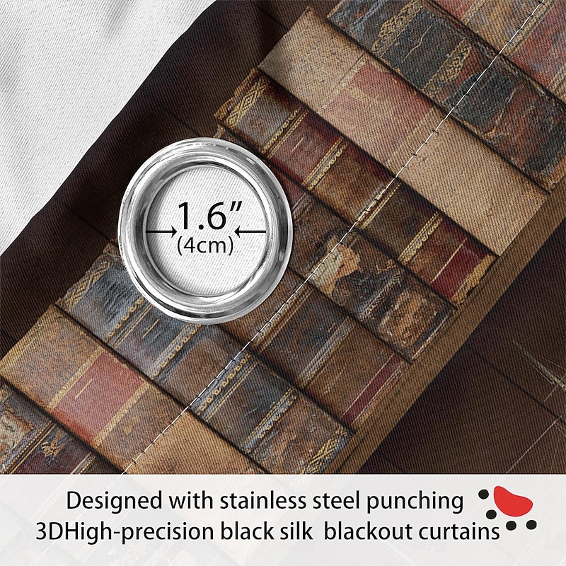Vintage Bookshelf Blackout Curtains Door Insulation Outdoor Balcony Rest Living Room Home Decoration 2-piece Set of 3d Digital Printing Perforated 9