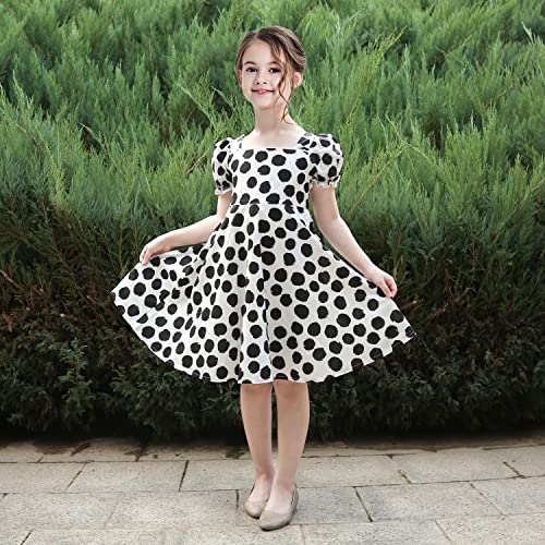 Sunny Fashion Girls Dress White Polka Dot Square Neck Button Puff Sleeve Vintage 6