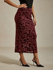 More information about Women's Skirt Trumpet / Mermaid Elegant Vintage Maxi High Waist Skirts Stretchy Wine Spring Velvet