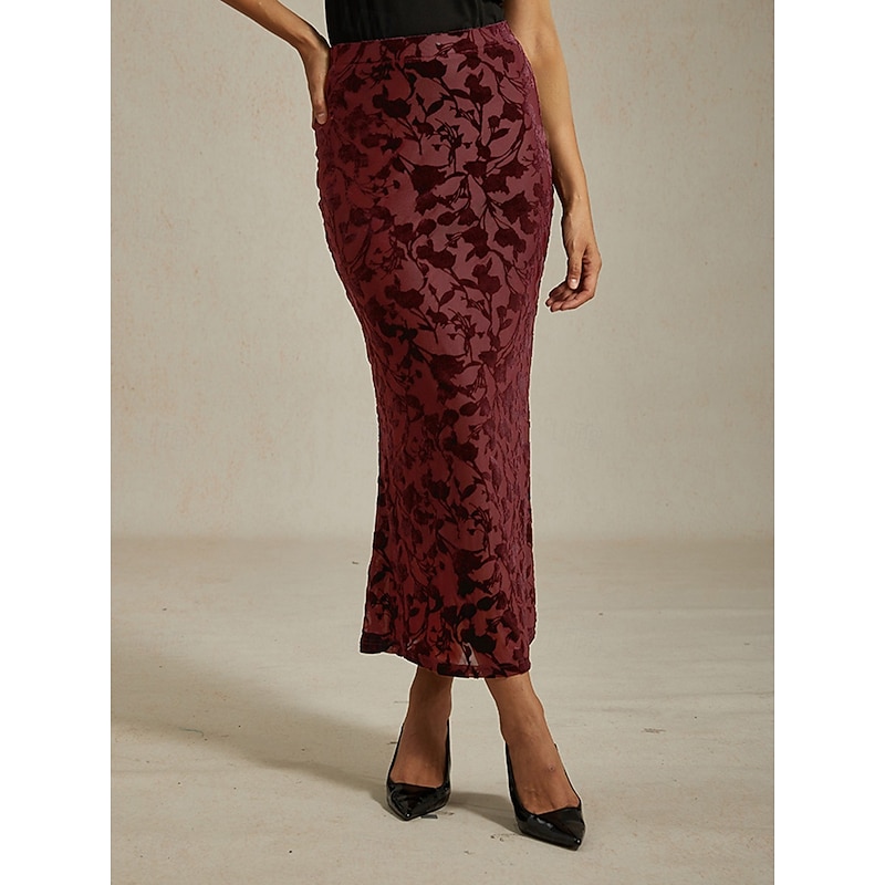Women's Skirt Trumpet / Mermaid Elegant Vintage Maxi High Waist Skirts Stretchy Wine Spring Velvet 6