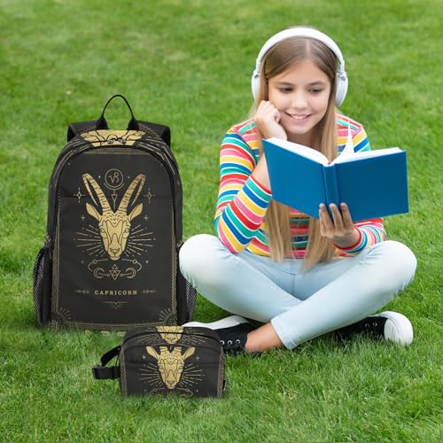 Zodiac-symbol-capricorn Backpack for Boys Girls, School Backpack for Elementary, Lightweight Bookbag with Lunch Box 1