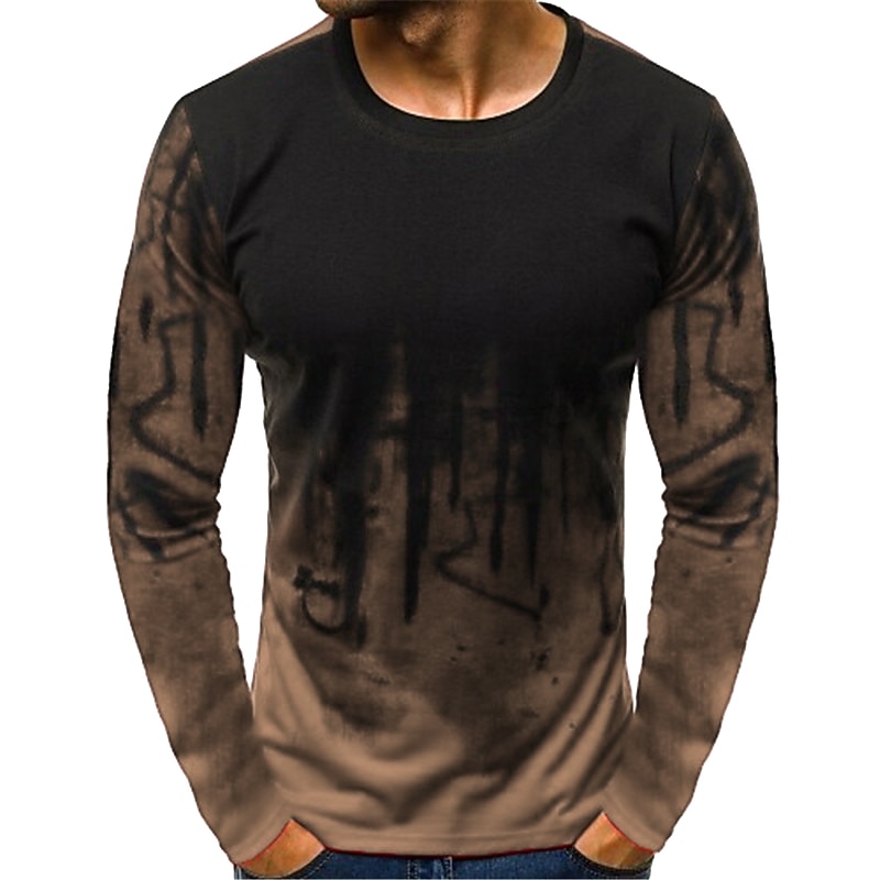 More information about Men's Graphic Color Block T Shirt Funny T Shirts Long Sleeve T shirt 3D Print Round Neck Shirt Vintage Basic Classic Daily White Army Green Red Spring Fall Clothing Apparel S M L XL XXL 3XL 4XL