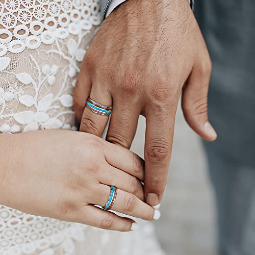 Mens Tungsten Wedding Bands - 8mm Created Blue Opal/Fire Opal Rings Hawaiian Koa Wood Inlay Ring Dome Style Comfort Fit Size 5-15 6