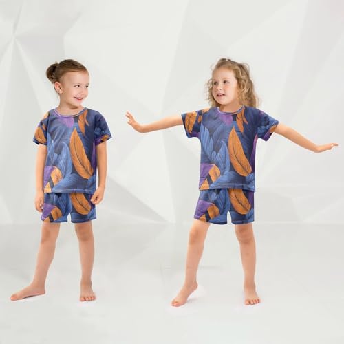 senya Short Sleeve Pajamas Sets Summer Cotton Sleepwear Blue Orange Feather 2