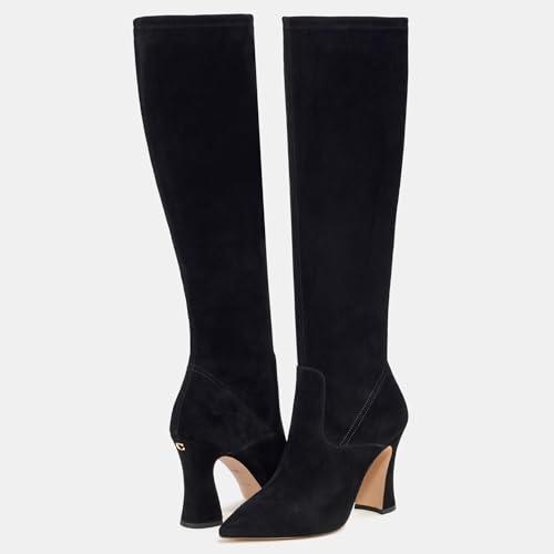• Editor's Notes: A sculptural heel and pointy toe add a polished look to a women's suede boot with a striking knee-high silhouette