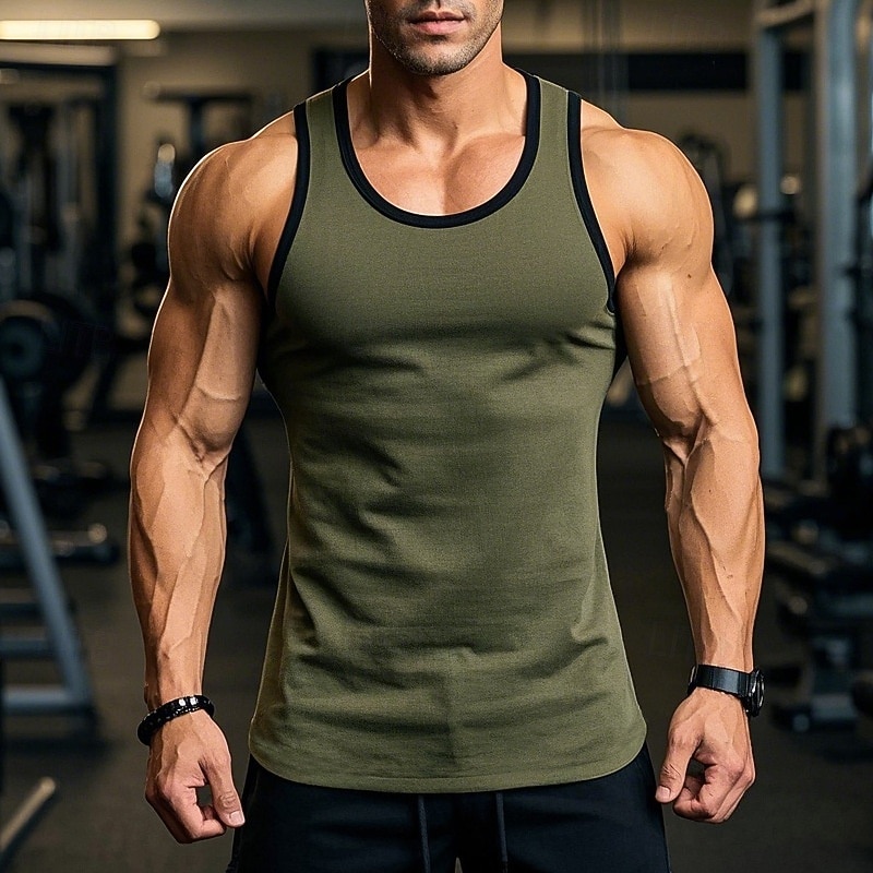 Men's Tank Top Vest Undershirt Sleeveless Shirt Sleeveless Round Neck Summer Solid Color Plain Athletic Color Block Street Casual Sports Black White Wine Top Tee for Men 13