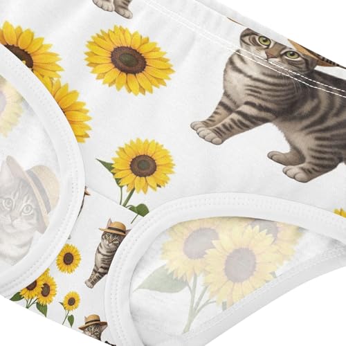 Toddler Panties, Cats Yellow Sunflowers White Cotton Girls Underwear, 2T–8 Years 4